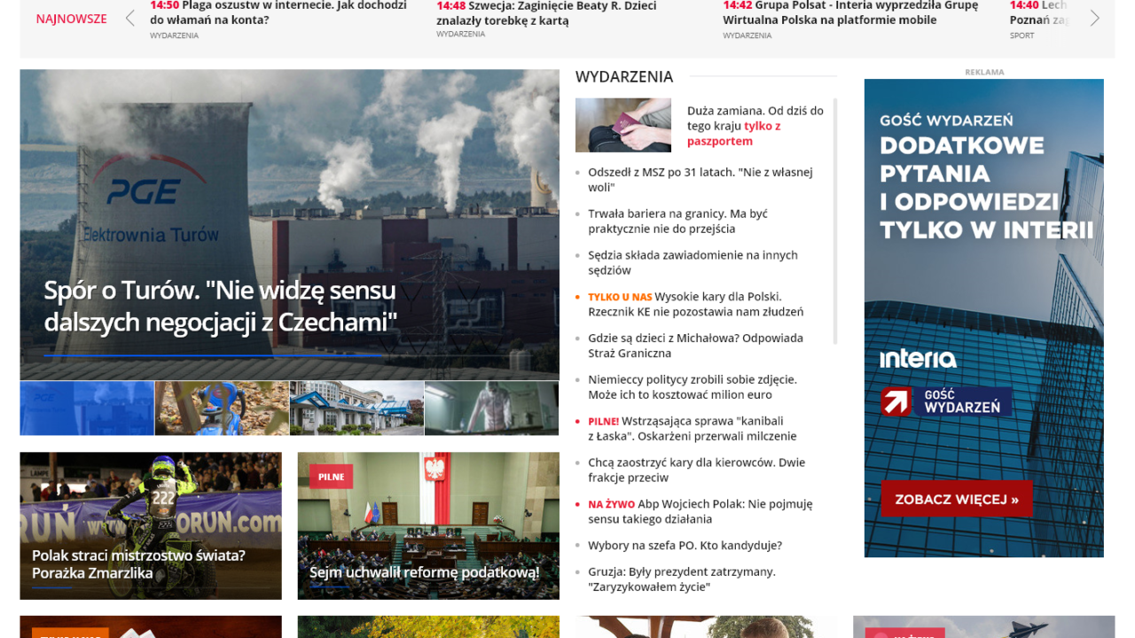 Najważniejsze newsy w blokach tematycznych Wydarzenia, Sport i Biznes są prezentowane w nowoczesnej formie, która maksymalnie skraca czas poszukiwania informacji. Zostały one przeniesione bliżej prawej strony, co umożliwia łatwe rozeznanie się po najgorętszych tematach dnia. Sekcje bliżej prawej krawędzi zapewniają z kolei szybki dostęp z poziomu strony głównej do materiałów wideo, felietonów, relacji na żywo i wywiadów, których nie można przeoczyć.