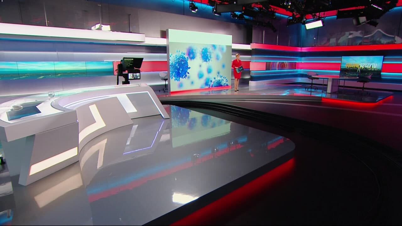 Początek programu realizowany jest przy ekranie w tylnej części studia. Gospodarz omawia przy nim najważniejszy temat dnia. Reszta magazynu prowadzona jest natomiast przy głównym stole prezenterskim.