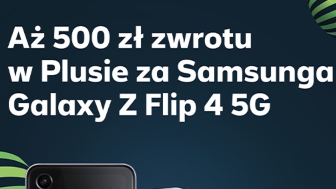 Od 26 sierpnia do 13 września br. klienci, którzy kupią w Plusie Samsunga Galaxy Z Flip 4 5G mogą otrzymać 500 zł zwrotu w gotówce.