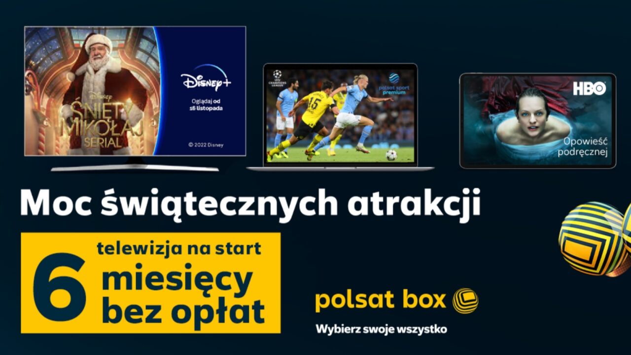 Ze świątecznych promocji można korzystać w technologii satelitarnej, kablowej IPTV oraz internetowej OTT z dekoderem, a na start Polsat Box oferuje aż 6 miesięcy telewizji bez opłat (z umową na 24 miesiące).