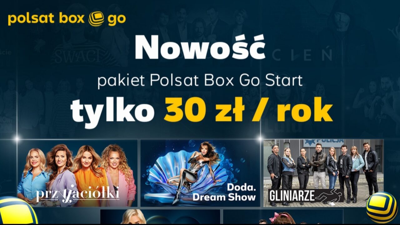Serwis streamingowy Polsat Box Go uruchamia nowy pakiet o nazwie Start w promocyjnej cenie tylko 30 zł za cały rok, czyli 2,5 zł miesięcznie. Pakiet Polsat Box Go Start będzie oferował dostęp do ponad 40 tysięcy godzin ulubionych seriali, reality shows, wyjątkowej rozrywki i wielu ekscytujących nowości z ponad 20 kanałów Telewizji Polsat.